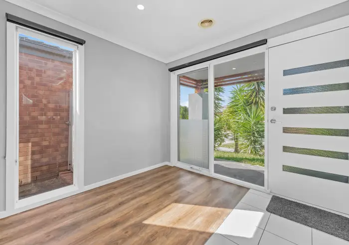 Upon entry, you’re welcomed by a wide hallway leading to a versatile formal sitting area or study, perfect for working from home or creating a quiet retreat. The laundry with linen cupboard and internal access to the double garage are positioned nearby for added practicality.